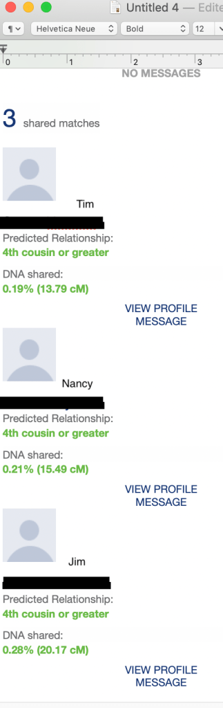 2. Thanks for this. The LivingDNA match list only has rudimentary navigation capabilities. Creating the files is mind-numbingly tedious…but worthwhile. I found that typing by hand was just as effective as screen-scraping. Google Sheets did a good job of autofilling the match names as I typed them which sped things up.