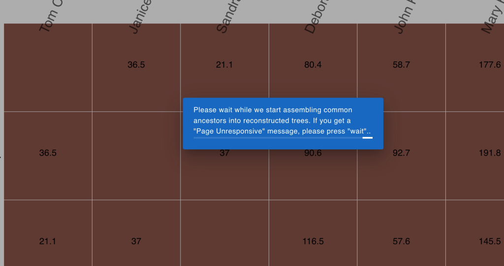 Clicking “Matches” again isolates the brown cluster and shows a message about assembling common ancestors.