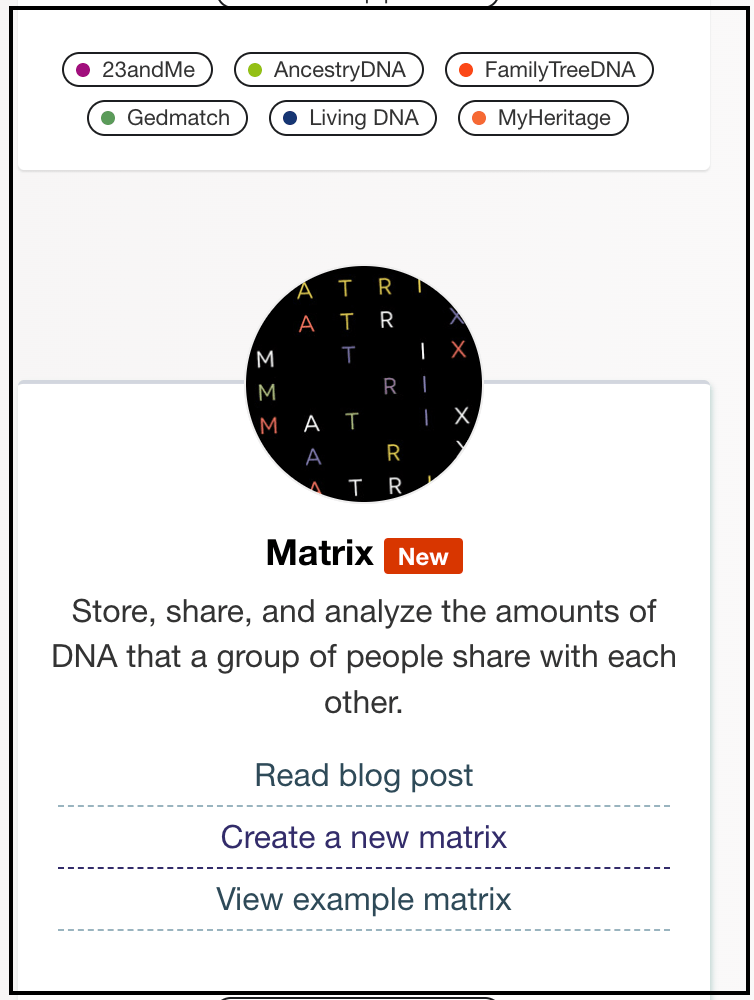 Open DNA Painter in another browser tab or window and go to DNA Painter tools. Scroll down to the Matrix.