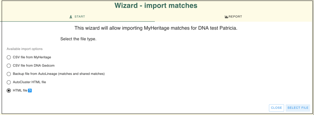 We’ll explore how this works using data from MyHeritage. There are multiple ways to import MyHeritage data, such as via AutoCluster results or HTML files (similar to Ancestry). However, if you want to run AutoKinship, you must use the HTML files, since the AutoCluster output from MyHeritage’s DNA Tools lacks the required cM values between shared matches.